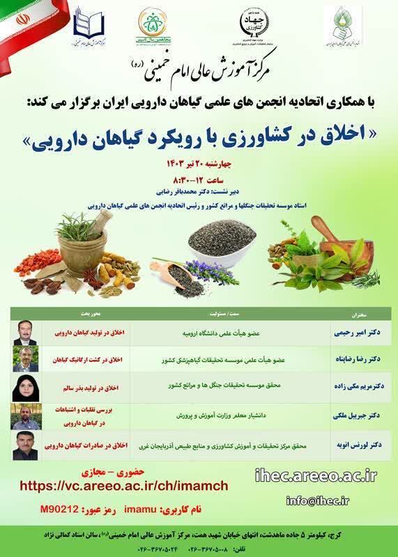 مرکز آموزش عالی امام خمینی(ره) با همکاری اتحادیه انجمنهای علمی گیاهان دارویی ایران برگزار میکند؛